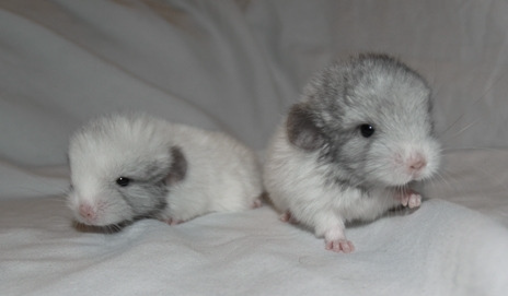 Another sound that chinchillas make is a mating call. It is best described as series of squeaks. Males often accompany this sound with movements that include wiggling his bottom back and forth and wagging his tail. This behavior is often referred to as the “swishy tail dance” and is used to get the attentions of the female. Sometimes, adult (male and female) chinchillas will do the “swishy tail dance” when they are excited about something.