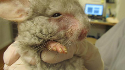 Fungus on a chinchillas nose and face.