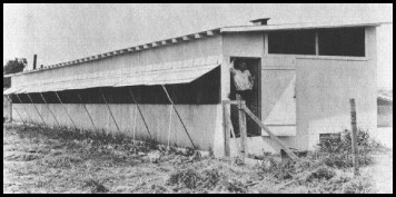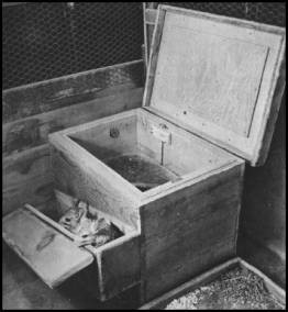 Over the years, Mr. Chapman experimented with the housing and feeding of the chinchillas. One of his changes included cutting the floor space in half since the chinchillas seemed to do well with less exercise. Another change was changing the wooden bottom of the cage to wire mesh. This allowed the droppings to fall through the mesh onto the floor below, making cleaning easier. He also built a cage system which was six feet by 8 feet and tall enough for a man to walk into. This setup had six inches of soil on top of a sturdy roof to insulate the cage from the southern California heat. For additional insulation, he added a twelve inch air space between the roof and ceiling.