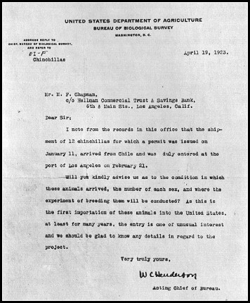 Since it was already illegal to export chinchillas to other countries, Mr. Chapman needed to get permission to from the Chilean government. Within one year of purchasing his first chinchilla, he started the process. Although the government was very reluctant to grant permission, Mathias did not stop applying until he received permission to trap several animals for export to the United States.