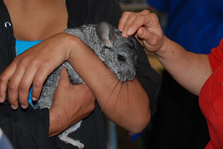 The tail grab looks cruel when in actuality, it is quite painless and can be less traumatic for most chinchillas. One must be careful, however, to be sure to do it correctly. If not, serious injury including a broken or de-gloved tail, can be the result. When done properly, the tail grab or hold is painless for the chinchilla.